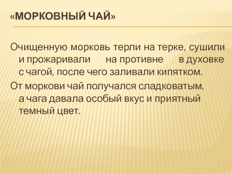 От моркови чай получался сладковатым, а чага давала особый вкус и приятный темный цвет.