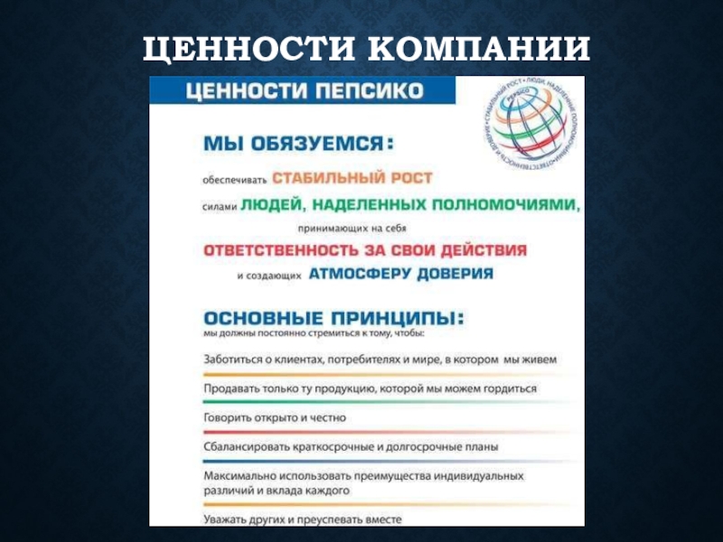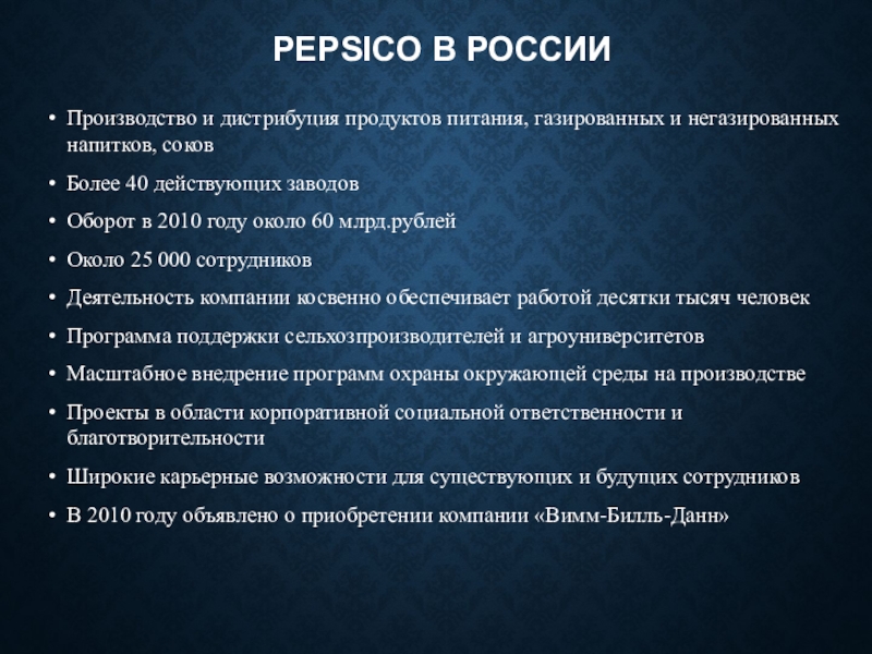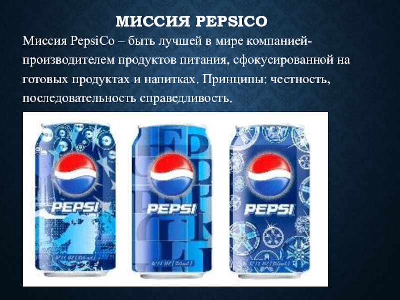 Миссия PepsiCo – быть лучшей в мире компанией-производителем продуктов питания,