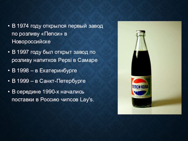Слайд 16В 1974 году открылся первый завод по розливу «Пепси» в Новороссийске