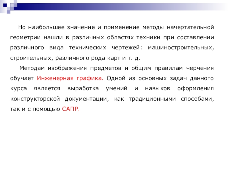 Слайд 18 Но наибольшее значение и применение методы начертательной геометрии нашли