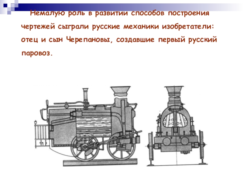 Слайд 9 Немалую роль в развитии способов построения чертежей сыграли русские