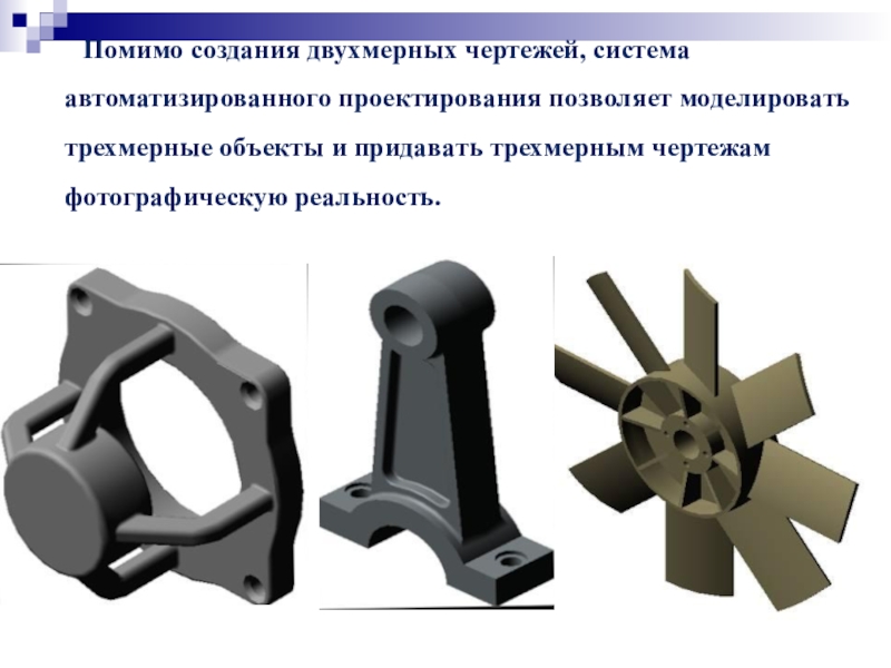 Слайд 20 Помимо создания двухмерных чертежей, система автоматизированного проектирования позволяет