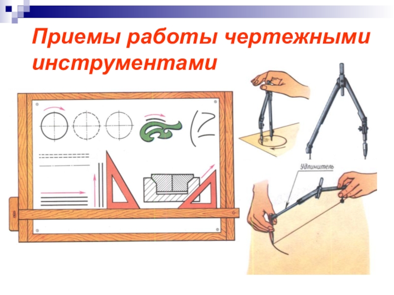 чертежи, которые назывались «планами». Для построения таких чертежей были созданы первые чертежные инструменты – деревянный циркуль- измеритель и веревочный прямоугольный треугольник.