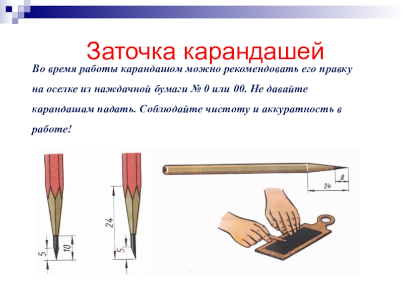 Во время работы карандашом можно рекомендовать его правку на оселке