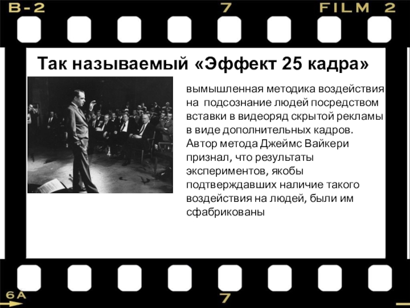 стопкадре, покадровой съемке, кадрировании и др. приемов.