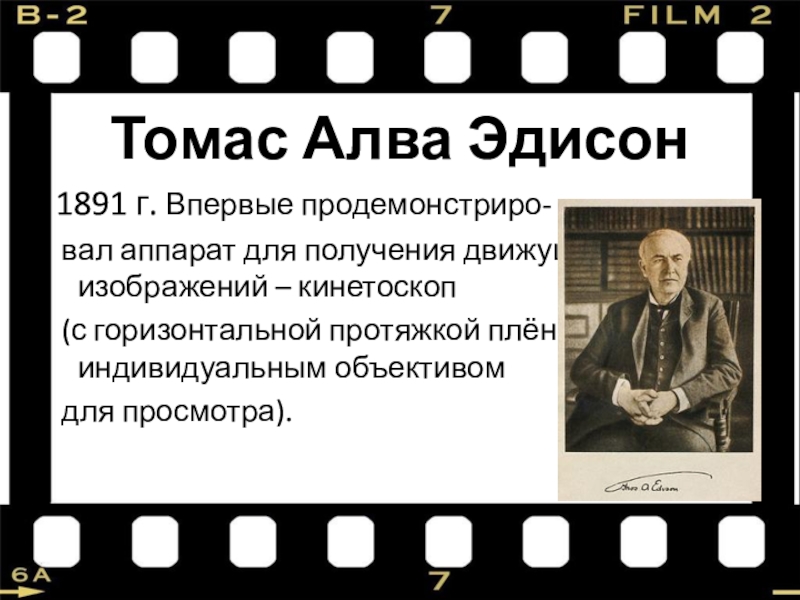 1894 г. первая надежная кинокамера – кинетограф Диксона