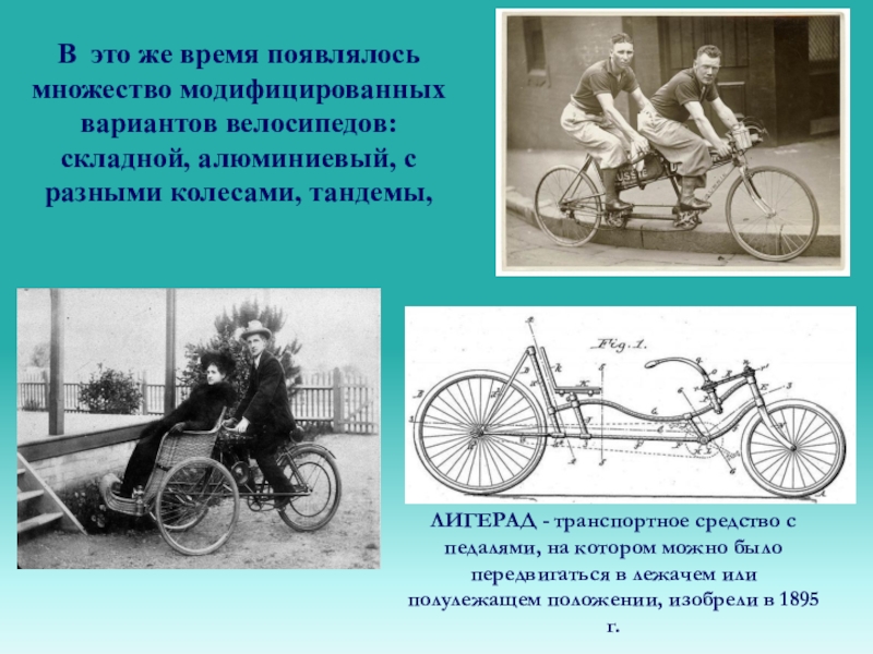 ЛИГЕРАД - транспортное средство с педалями, на котором можно было передвигаться в лежачем или полулежащем положении, изобрели в 1895 г.