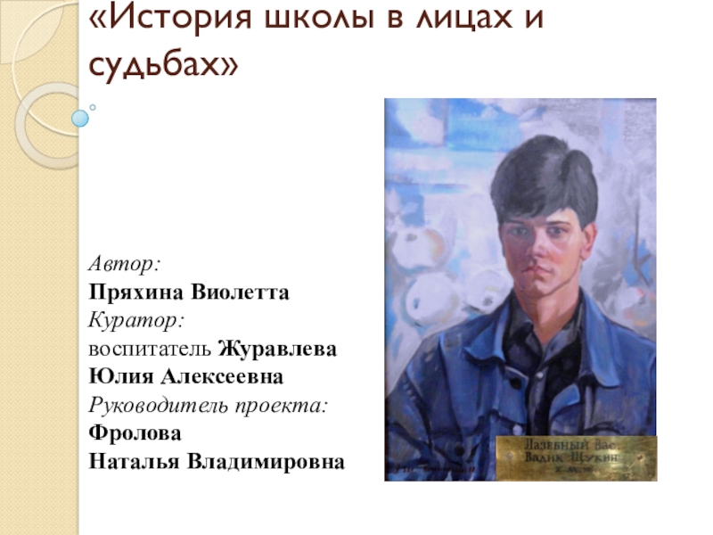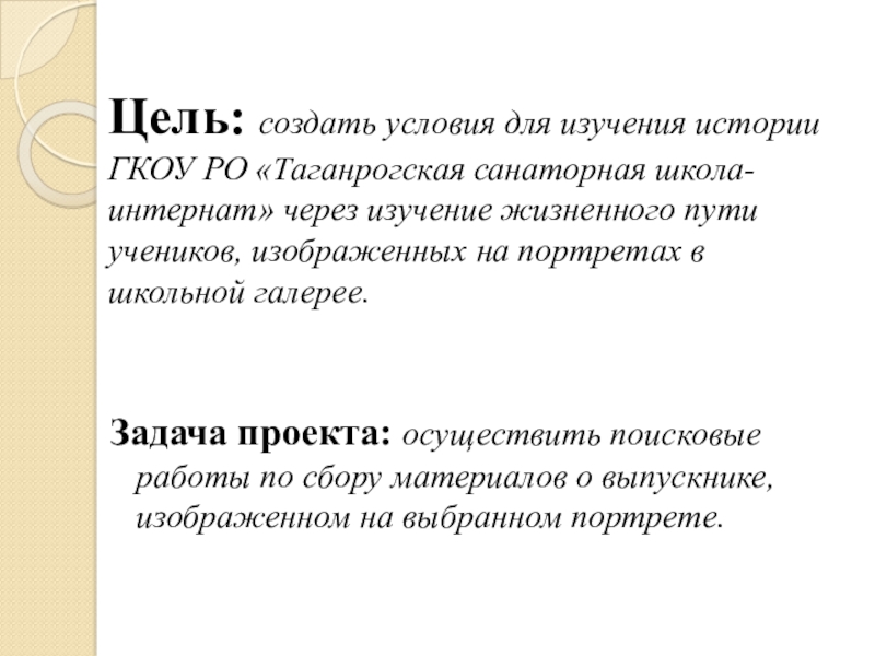 Задача проекта: осуществить поисковые работы по сбору материалов о выпускнике, изображенном на выбранном портрете.