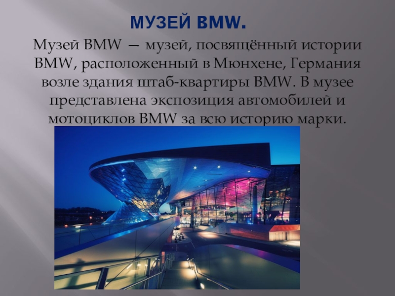 Музей BMW — музей, посвящённый истории BMW, расположенный в Мюнхене,