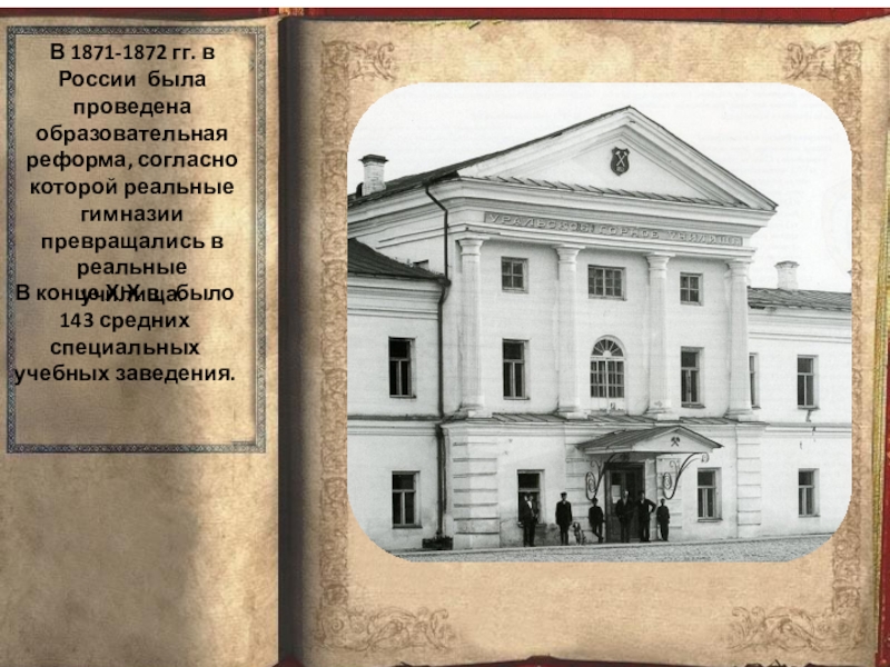 В конце ХIХ в. было 143 средних специальных учебных заведения.
