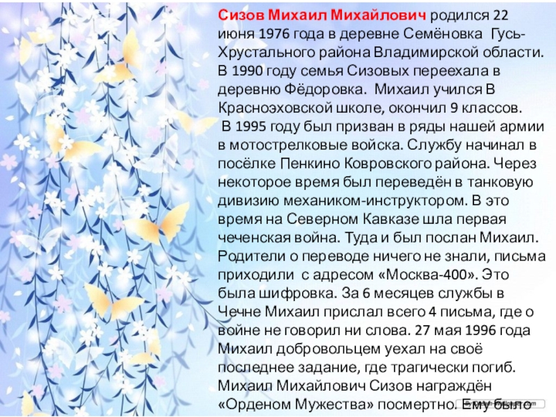 Презентация, доклад История жизни интересных людей Сизов Михаил Михайлович