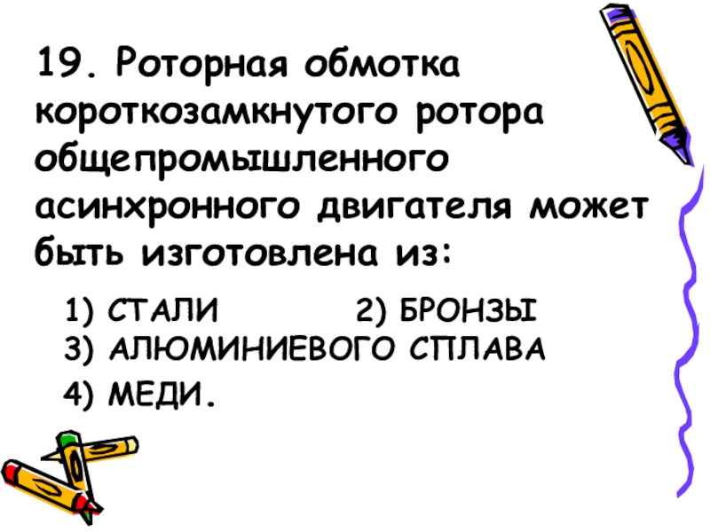 19. Роторная обмотка короткозамкнутого ротора общепромышленного асинхронного двигателя может быть изготовлена из: