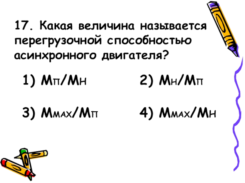 17. Какая величина называется перегрузочной способностью асинхронного двигателя?