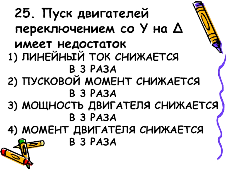 25. Пуск двигателей переключением со Y на Δ имеет недостаток
