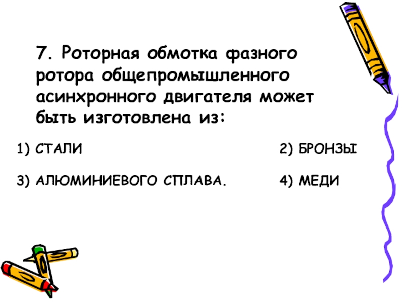 7. Роторная обмотка фазного ротора общепромышленного асинхронного двигателя может быть изготовлена из: