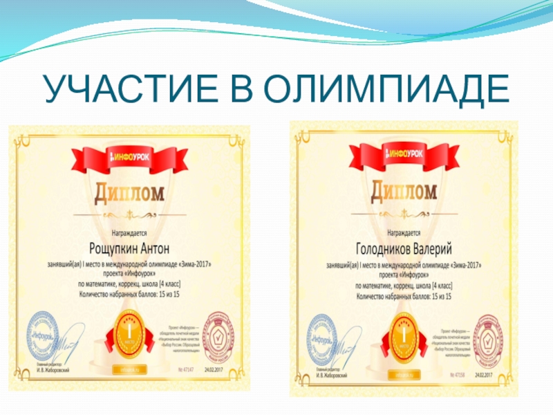 Слайд 41УЧАСТИЕ В ОЛИМПИАДЕ