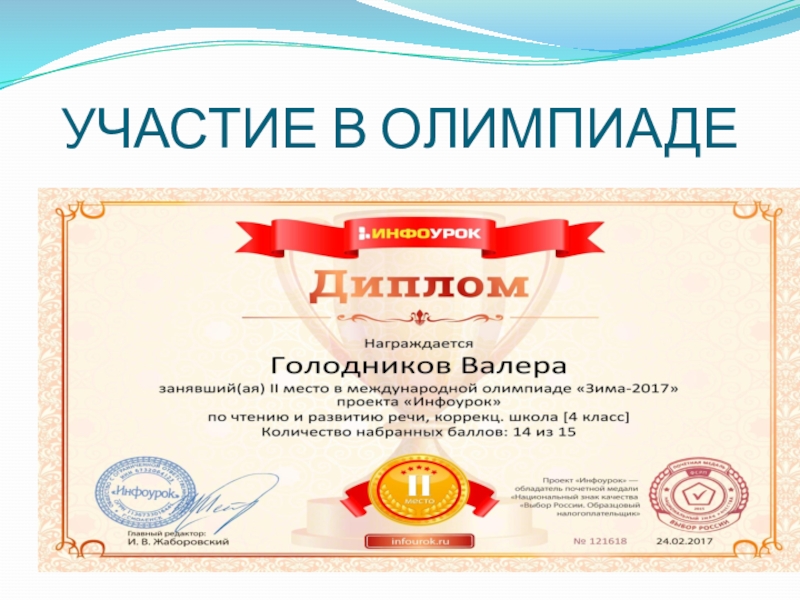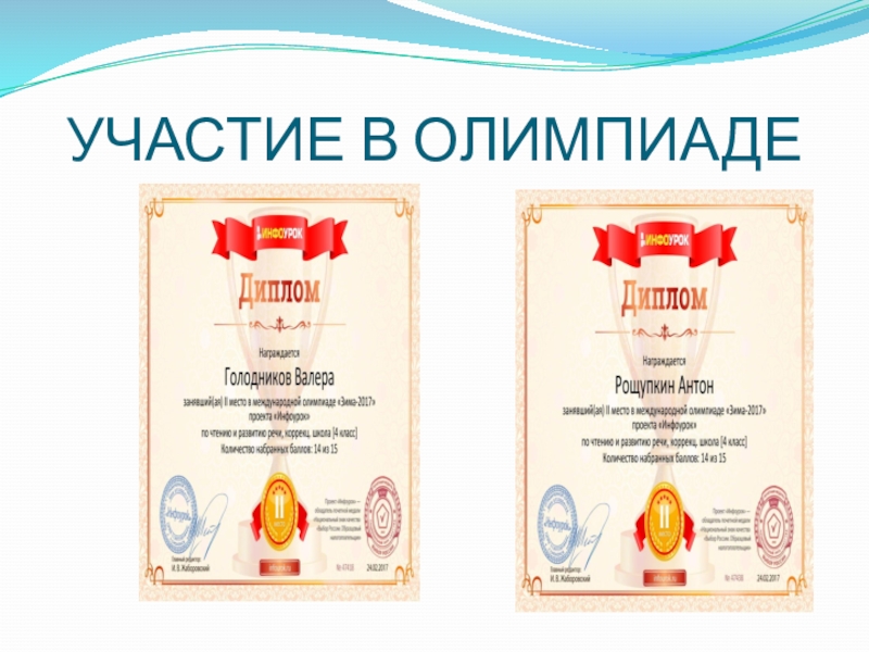 Слайд 40УЧАСТИЕ В ОЛИМПИАДЕ