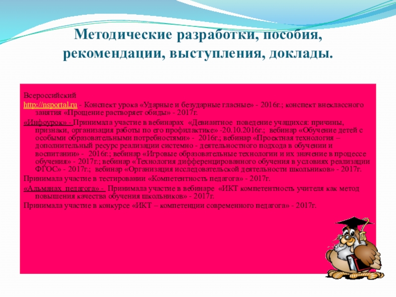 Методические разработки, пособия, рекомендации, выступления, доклады.  Всероссийскийhttp://nsportal.ru -