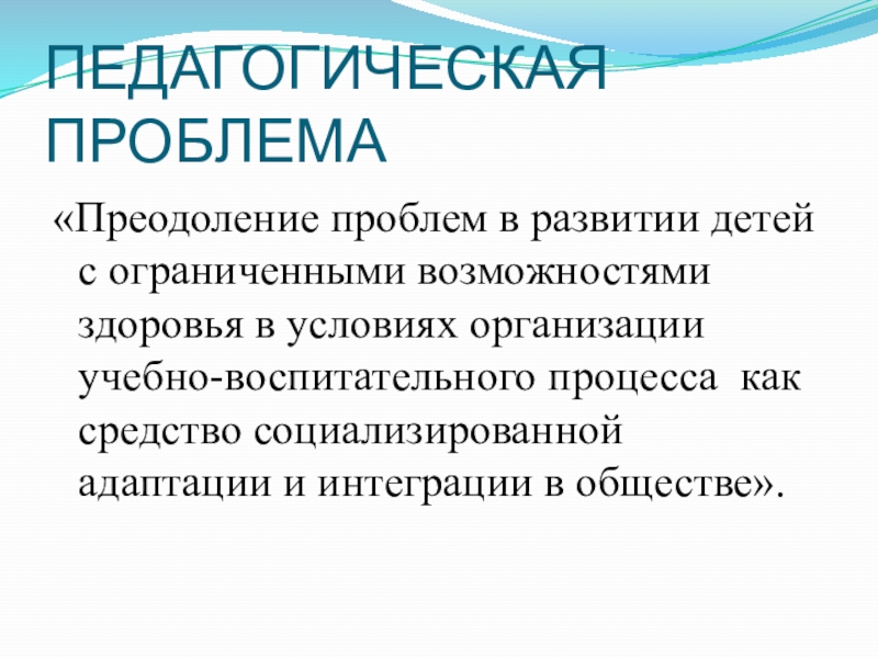 ПЕДАГОГИЧЕСКАЯ ПРОБЛЕМА«Преодоление проблем в развитии детей с ограниченными возможностями здоровья в условиях организации учебно-воспитательного процесса как средство