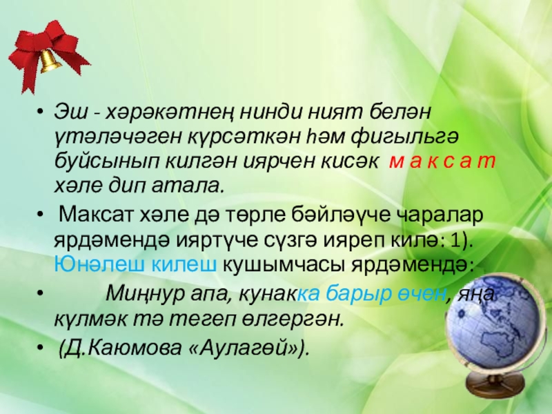 иярчен максат җөмлә турында мәгълүмат бирү;