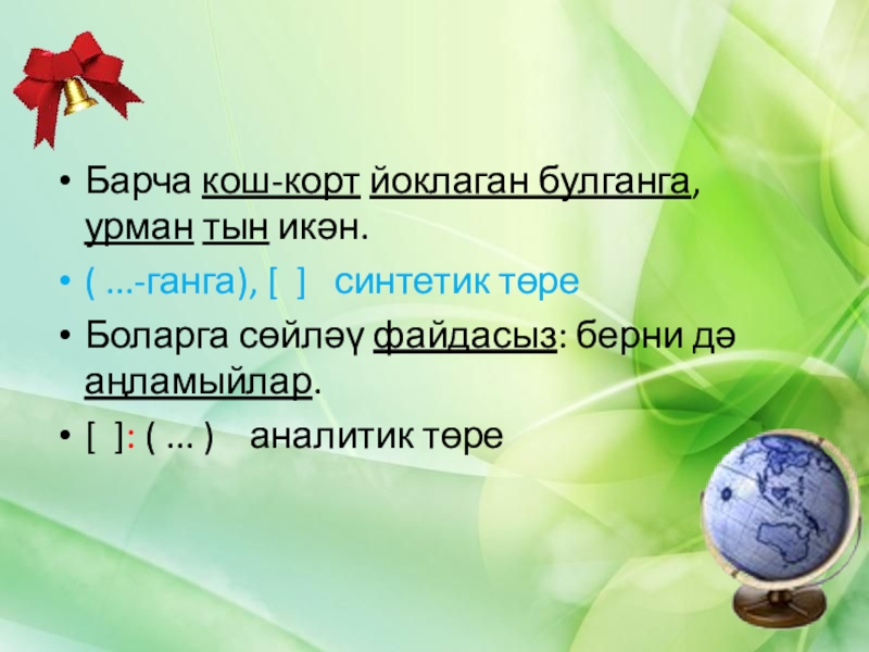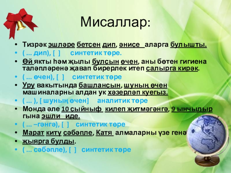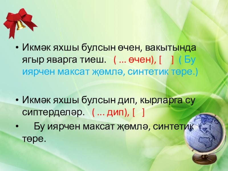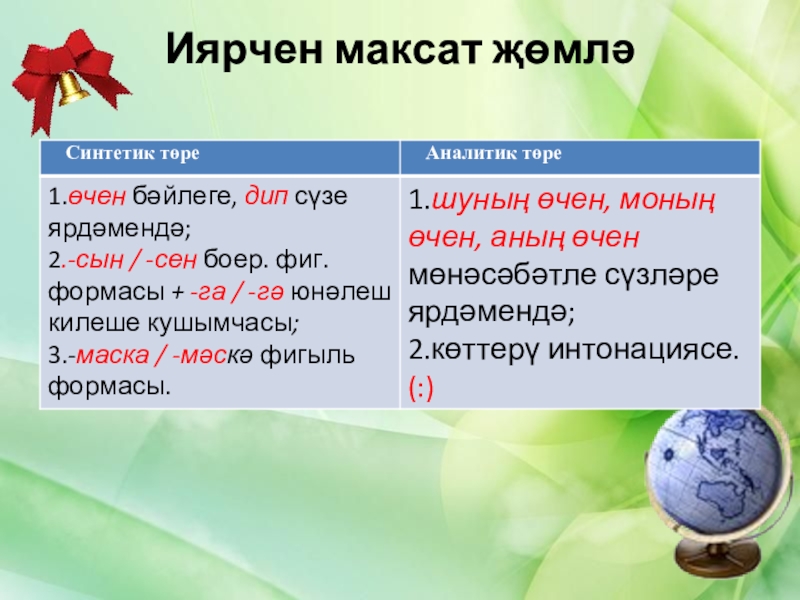 өчен), [ ] ( Бу иярчен максат җөмлә, синтетик төре.)