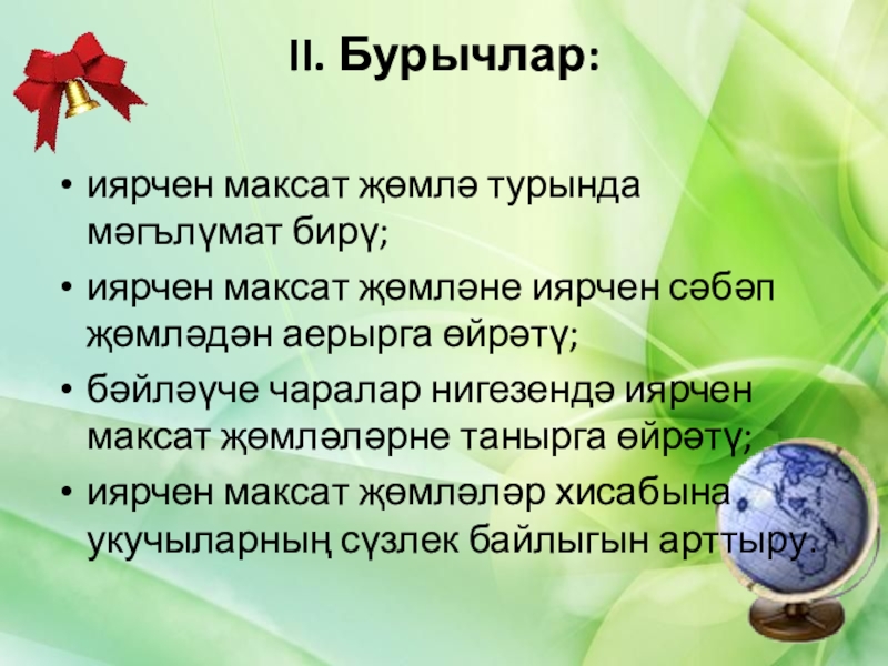 иярчен максат җөмләләр хисабына укучыларның сүзлек байлыгын арттыру.