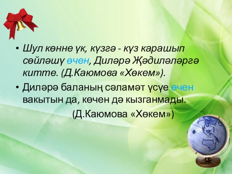Слайд 11Шул көнне үк, күзгә - күз карашып сөйләшү өчен, Диләрә Җәдиләләргә