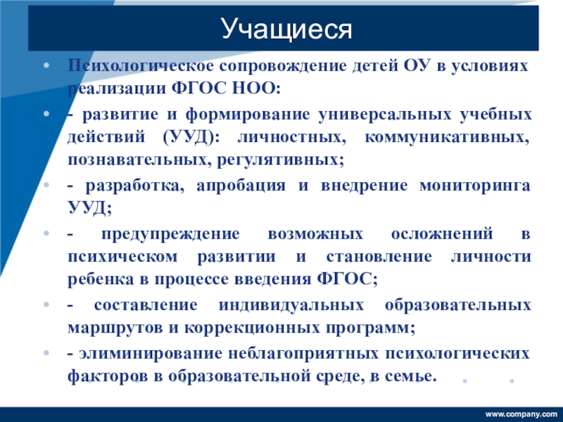 Психологическое сопровождение детей ОУ в условиях реализации ФГОС НОО:
