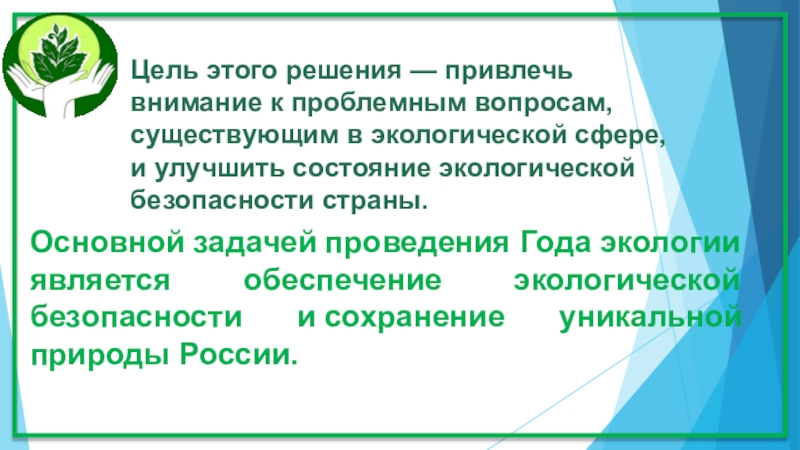 Основной задачей проведения Года экологии является обеспечение экологической безопасности и сохранение уникальной природы России.