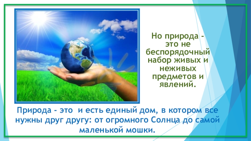 Природа - это и есть единый дом, в котором все нужны друг другу: от огромного Солнца до самой маленькой мошки.