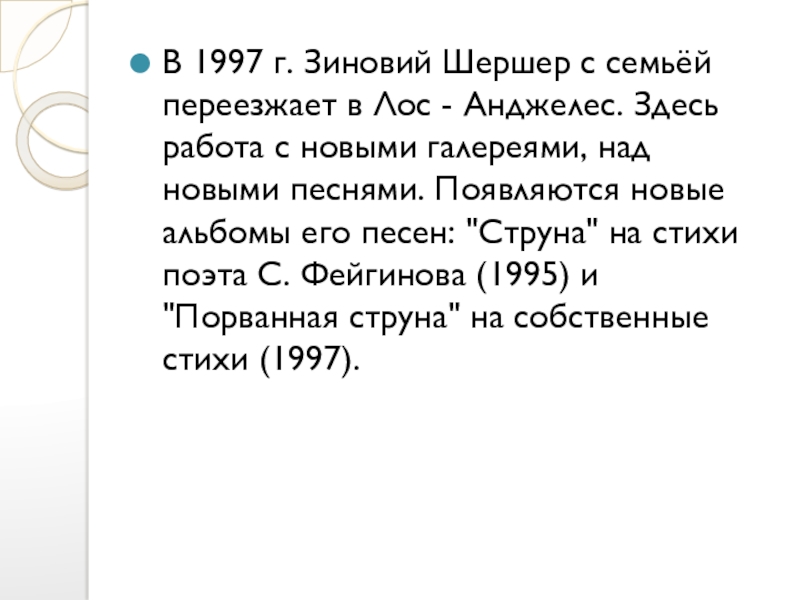 Слайд 8В 1997 г. Зиновий Шершер с семьёй переезжает в Лос -