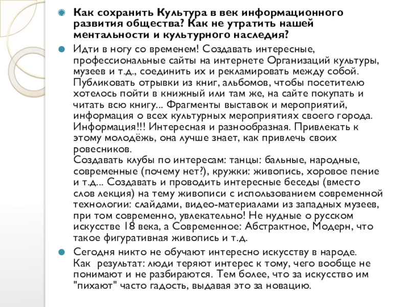 Слайд 14Как сохранить Культура в век информационного развития общества? Как не утратить