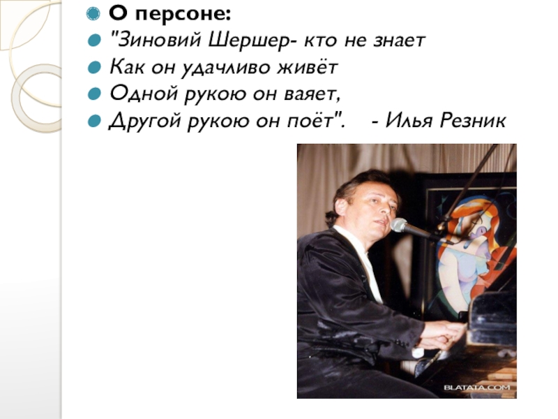 Слайд 4Зиновий Александрович Шершер. Живопись и музыка с ранних лет существовали в
