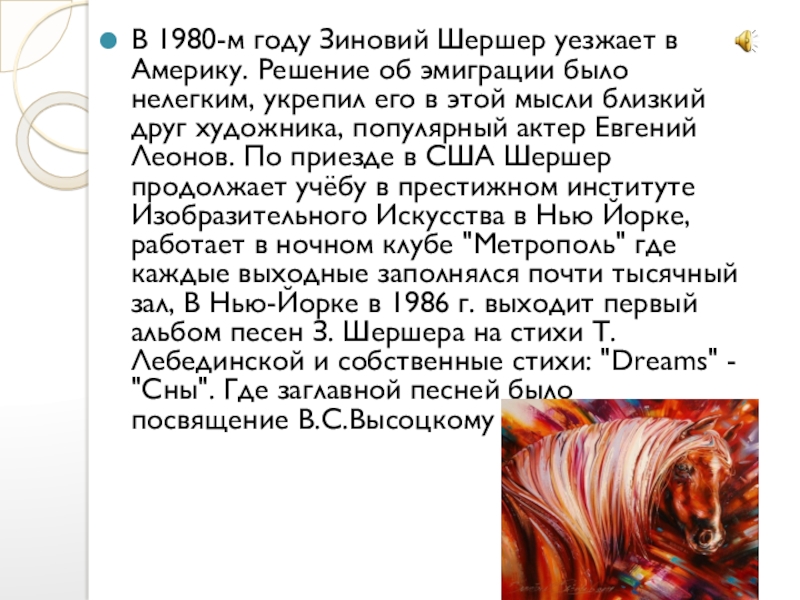 Слайд 7В 1980-м году Зиновий Шершер уезжает в Америку. Решение об эмиграции