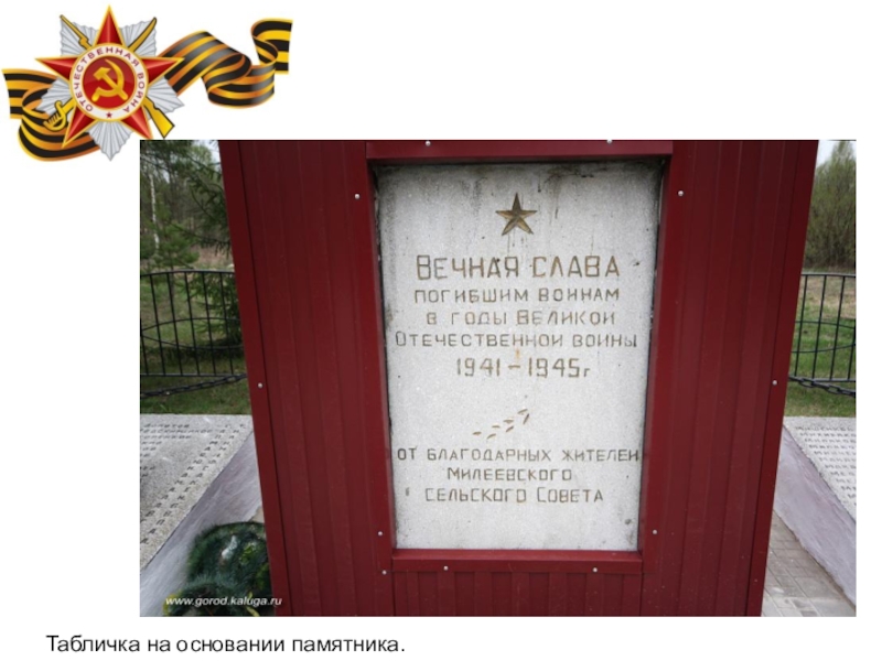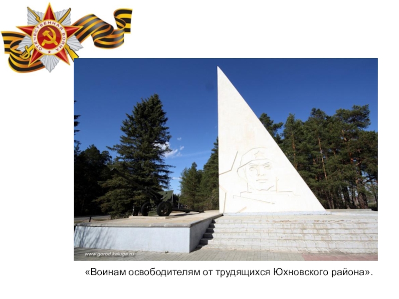 Слайд 40«Воинам освободителям от трудящихся Юхновского района».