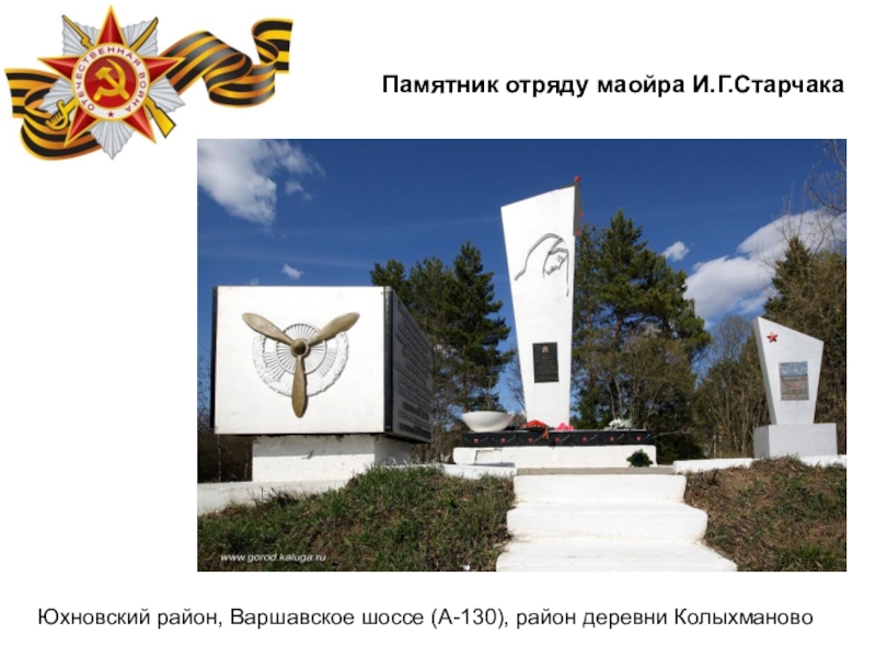 Слайд 46Памятник отряду маойра И.Г.Старчака