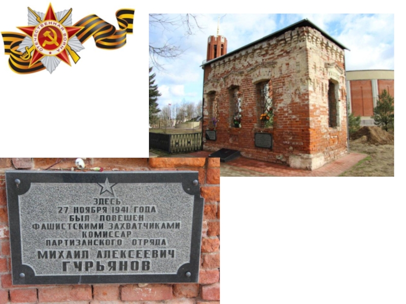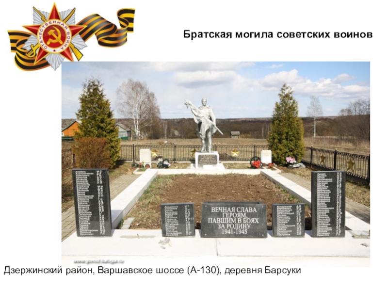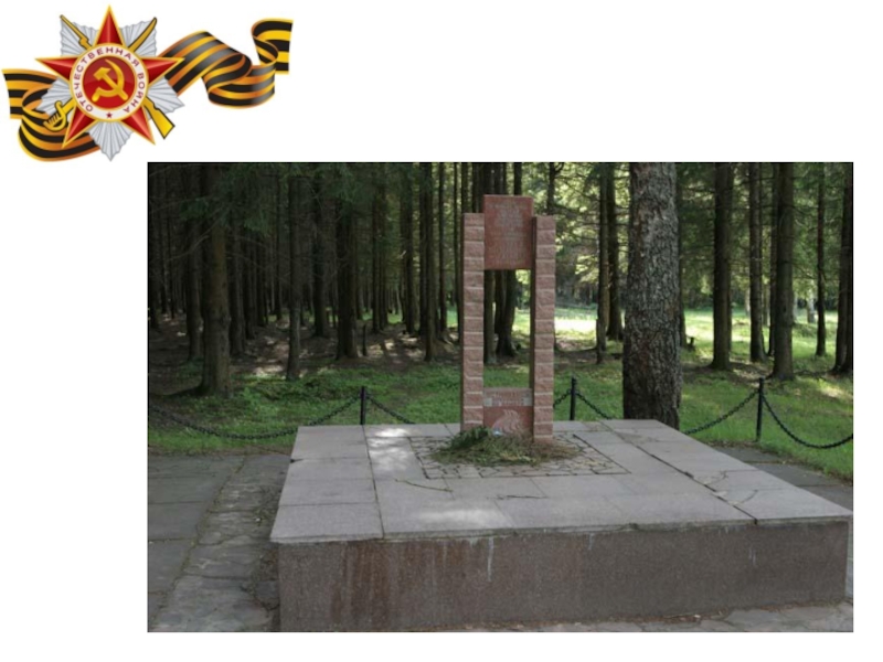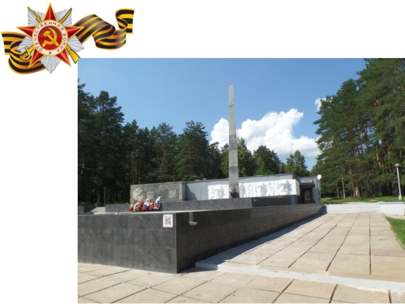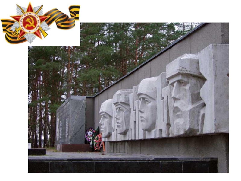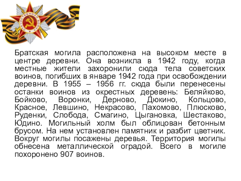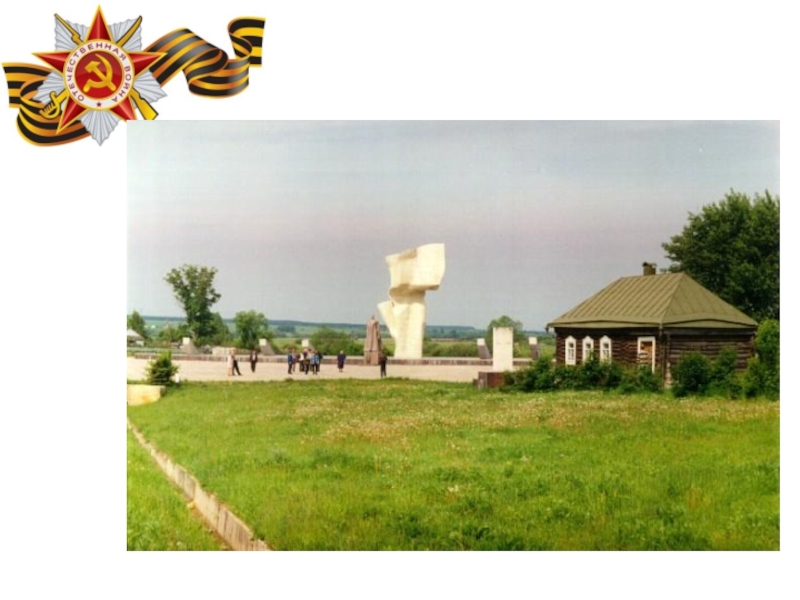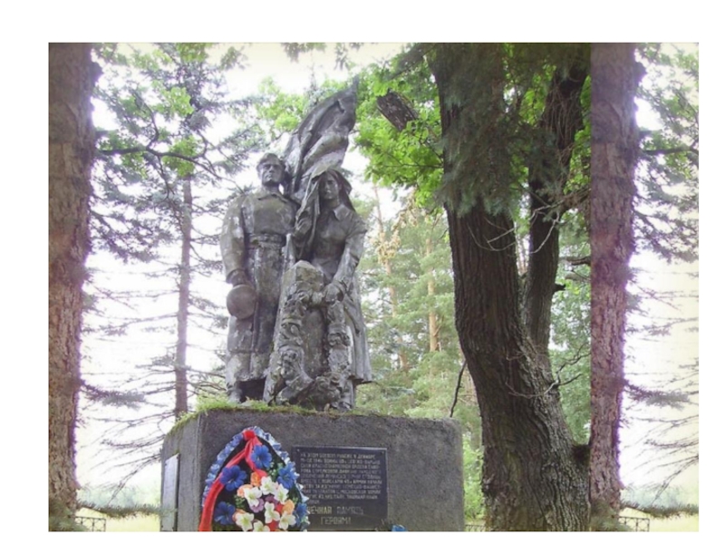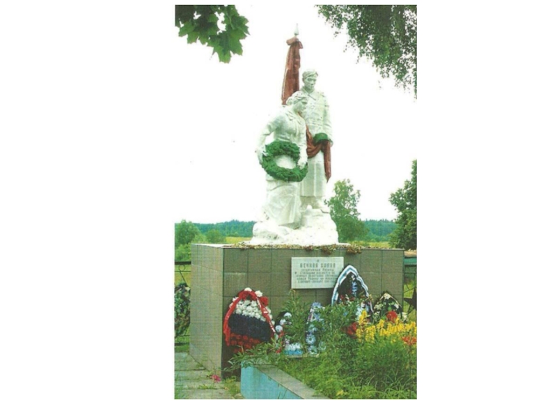 Слайд 36Братская могила расположена на высоком месте в центре деревни. Она возникла