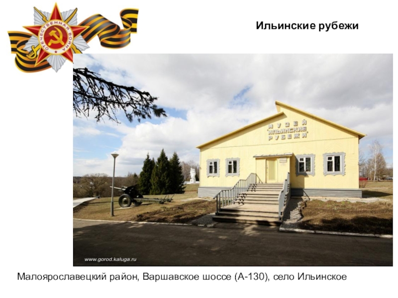 в 140 км от Москвы. На площади в 2,7 га находятся: военно-исторический музей, два дота (артиллерийский и пулеметный), сохранившиеся с 1941 г., два артиллерийских орудия, а также Курган Славы с памятником подольским курсантам и Вечным Огнем у его подножия. Все объекты соединены между собой пешеходными дорожками и доступны для осмотра. Имеется автостоянка. Рядом речка и лес. В музее имеется схема обороны Ильинского рубежа, макет центрального ее участка, фрагменты оружия, найденные на месте боев, материалы, рассказывающие о подвиге Подольских курсантов и личные вещи участников сражения.