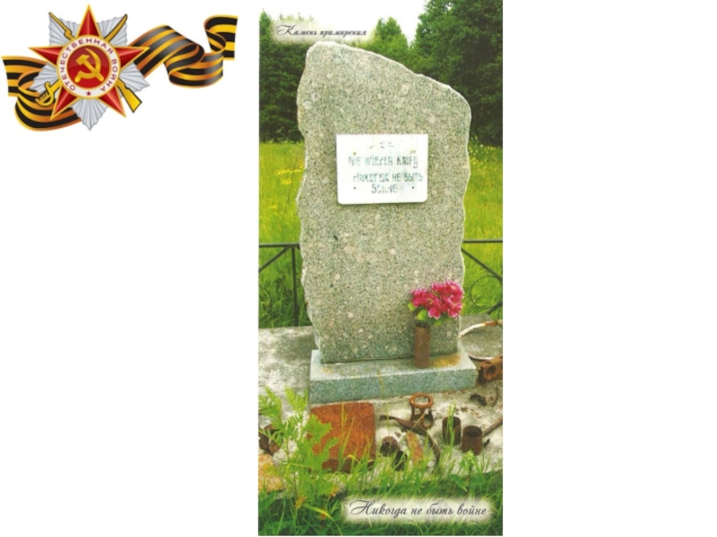 Есть на Малеевом поле еще один памятник. Очень скромный обелиск серого гранита стоит на въезде, поэтому миновать его никак не получится. Это памятник, установленный потомками погибших здесь немецких солдат. На нем не высечено имен, нет символов воинской славы, только две надписи на немецком и на русском — «Никогда не быть войне».