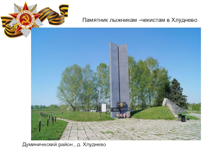 Слайд 48Памятник лыжникам -чекистам в Хлуднево
