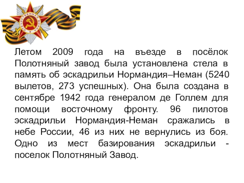 Слайд 57Стела в честь эскадрильи «Нормандия-Неман»