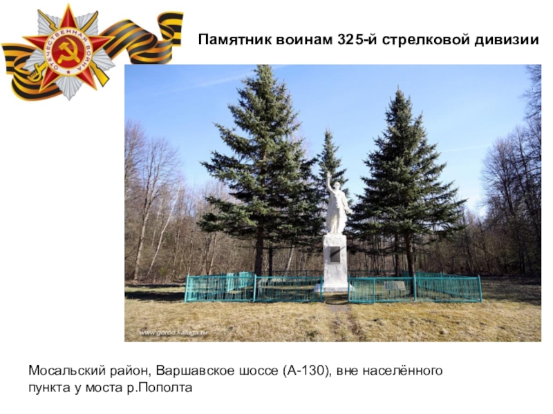 Слайд 29Памятник воинам 325-й стрелковой дивизии