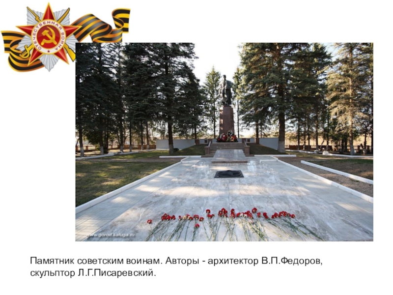Слайд 56Памятник советским воинам. Авторы - архитектор В.П.Федоров, скульптор Л.Г.Писаревский.