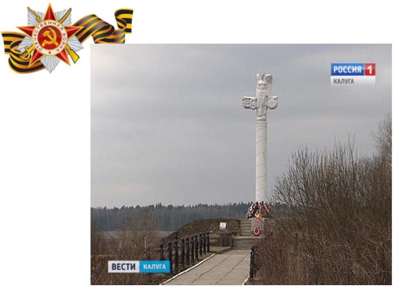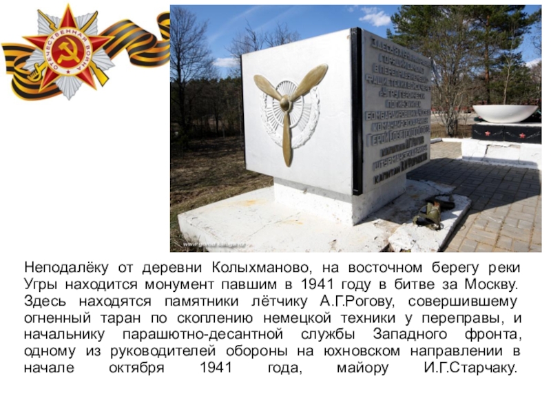 Слайд 47Неподалёку от деревни Колыхманово, на восточном берегу реки Угры находится монумент