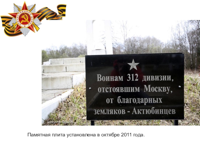 Слайд 79Памятная плита установлена в октябре 2011 года.