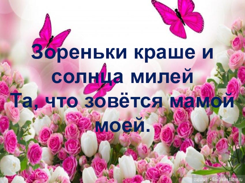 Слайд 15Зореньки краше и солнца милей Та, что зовётся мамой моей.