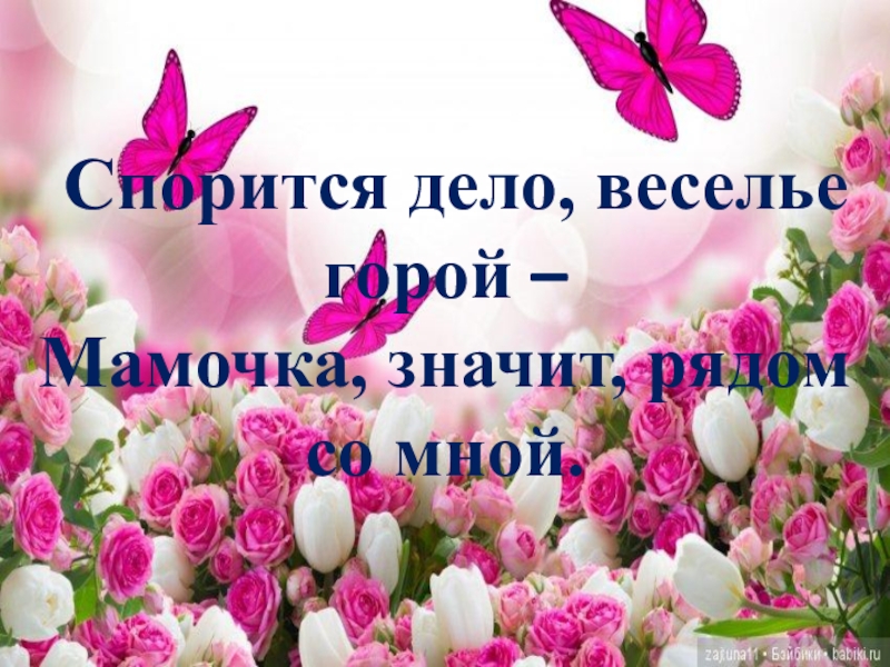 Слайд 19Спорится дело, веселье горой – Мамочка, значит, рядом со мной.