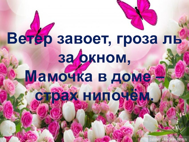 Слайд 17Ветер завоет, гроза ль за окном, Мамочка в доме – страх