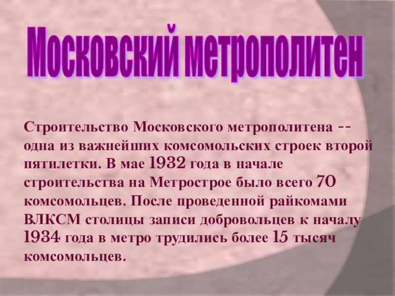 Выдающуюся роль в этом сыграли ударные комсомольские стройки. Это стройки, над которыми шефствовал комсомол, направлял по общественному призыву молодых людей, вместе с хозяйственными руководителями организовывал труд и быт строителей.