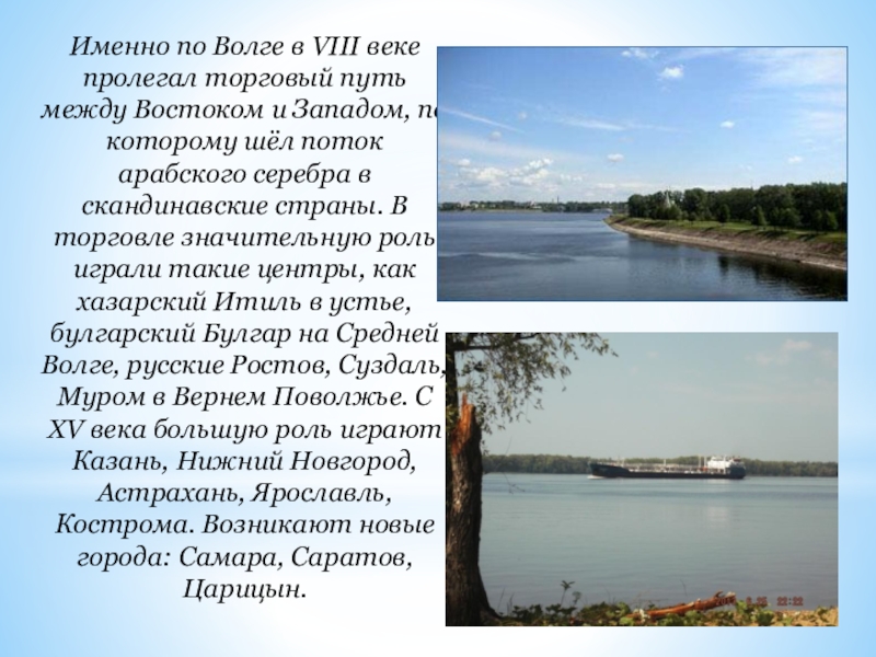 Слайд 7Именно по Волге в VIII веке пролегал торговый путь между Востоком